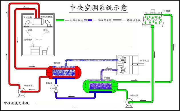中央空调循环冷却水基本使用自来水。多年来,由于水系统结垢和腐蚀造成机组功能下降、使用寿命降低、能耗增加,业主长期处于设备、管线维修的局面。为改变这种状况,水磁化器被引入中央空调水系统。实践证明,使用这种设备处理能力有限,不成功的报导很多。上世纪80年代中期在工业的冷冻水系统引入工业循环冷却水处理技术后非常成功,这就是循环冷却水化学水处理技术。该技术是向水中投加水质稳定剂――包括分散剂、阻垢剂、缓蚀剂、杀菌剂等。是通过化学方法,使水中结垢型离子稳定在水中,其原理是通过螫合、络合和吸附分散作用,使Ca2+、Mg2+稳定地溶于水中,并对氧化铁、二氧化硅等胶体也有良好的分散作用,本法是目前空调水处理使用最为普遍的一种方法,也是在工业循环水处理中应用面最广、技术最成熟的一种方法,实践证明是有效而经济的方法。